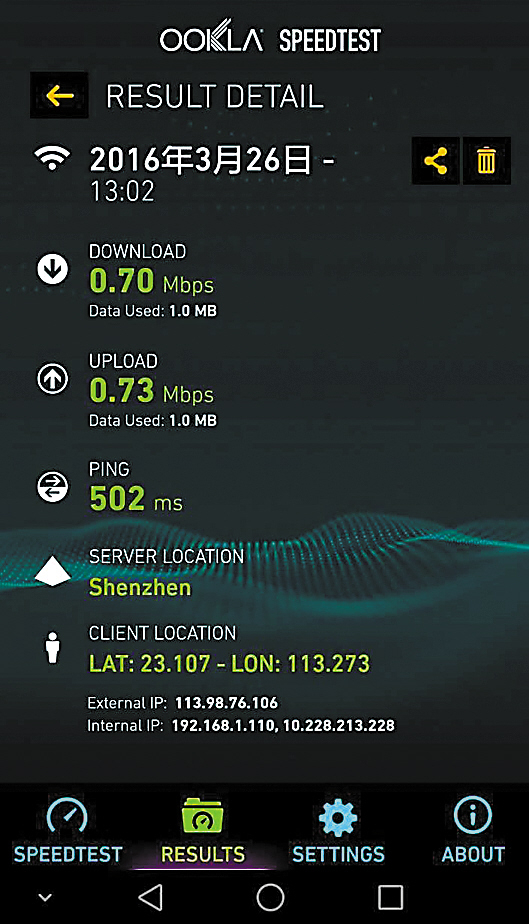 家住海珠区的朱先生报装二级运营商——互通宽带,选择了25M的网络,如果是吃过晚饭后或者周末,连看个视频都卡。然而每到凌晨,家里的网速就会恢复正常,“玩游戏看视频非常通畅”,下载速度也可以达到甚至超过3m/s。“装的是独享网络,按理来说应该没有所谓忙时与闲时的区别,可为什么我家的网速,会随着晚上或周末上网人数多而变慢呢?”这让朱先生心生疑惑。