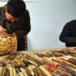 “做雕刻,就是要考验眼力,要耐得住寂寞,抵挡得住诱惑。”朱斌说,现在雕刻市场越来越受到重视。“好多地方邀请我们过去,我们现在就是没有时间去”说着还指了指堆在墙角的一堆木料。