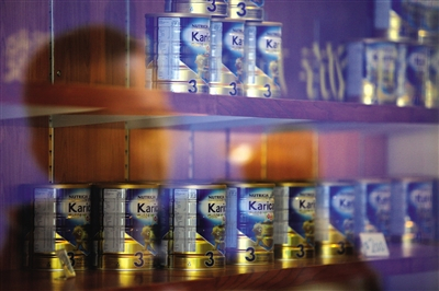 达能昨日否认可瑞康因造假问题退出中国市场。图为境外一家可瑞康专卖店里,摆放着多款可瑞康奶粉。图/东方IC