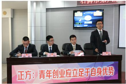 经过十几天的辛苦备战,从选拔赛初赛中脱颖而出的泉州师范学院代表队、闽南理工学院代表队、石狮市人力资源与社会保障局代表队、国网石狮市供电公司代表队、石狮民生银行代表队、建设银行石狮分行代表队等6支队伍。辩论中,正反双方辩手紧扣“青年创业应立足于自身优势还是市场需求”这一辩题,以自身的观点为基础,通过大量数据、事例、名言从容镇定的陈述,牢固夯实自身观点。辩手们细致入微地的观察对手的一言一行,努力从对方的言语中找到突破口和切入点,你追我赶丝毫不敢有半点懈怠,将青年人积极向上,朝气阳光的精神风貌展现的淋淋尽致,给我们带来了一场辩论的视听盛宴。评委们还分别从不同的角度对每场比赛团队和个人表现进行了综合点评。最后经过一番唇枪舌剑的激烈角逐,泉州师范学院1队代表队和建设银行石狮分行代表队更胜一筹,荣获本次辩论赛决赛的一等奖。