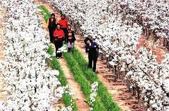 汉村梨花桃花争妍斗艳