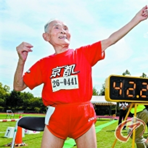 105岁的日本老人瑞宫崎秀吉参加100米赛跑。