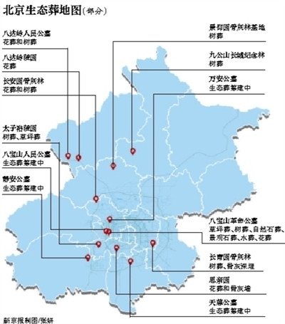 去年12月,北京市民政局印发《北京市殡葬事业发展规划(2016-2020年)》,提出力争到2020年,骨灰安葬生态化比例达到年安葬量的50%,骨灰撒海数量达到年火化量的4%以上,有墓地的区都要建设一处绿色生态墓地示范园。