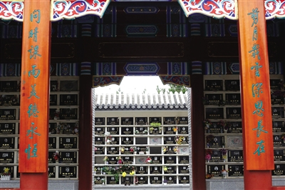 八宝山革命公墓玉岑园立体安葬,有骨灰廊、骨灰墙和骨灰亭。
