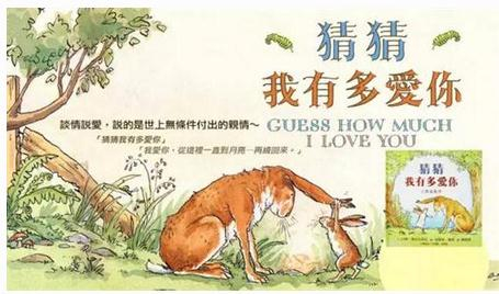 《猜猜我有多爱你》,讲得是一只大兔子和一只小兔子,在比谁爱谁更多一点的故事,比到最后,故事里的大兔子说,“我爱你爱到月亮上,再从月亮上回到地球那么多。”哇,那真的是爱得很多!