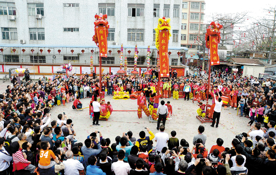 8时许,民俗巡游活动正式开始。震天动地的潮汕大锣鼓过后,一群彩墨花脸的“好汉”挥舞彩色木棒,踏着鼓点,一路呼啸而来,这便是当地豪迈粗犷的英歌舞;而伴随着悠扬的潮阳笛套音乐,款款而来的妙龄少女们扛着“吉祥盈门”、“风调雨顺”等标旗,更是承载人们的美好祝愿;此外,巡游活动中的醒狮表演、腰鼓队、仪仗队等极具特色的传统文艺节目,同样让人目不暇接。