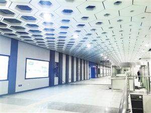 此前,深都君就向大家介绍过机场站独具特色的“蜂巢顶”。作为与深圳宝安国际机场无缝对接的车站,工程师特意将车站的整体设计与宝安国际机场T3航站楼的设计融为一体,提取T3航站楼蜂巢六边形造型元素,延续其全球建筑“从必然形体走向自由形体的革命”的参数化设计理念,演绎地上地下的紧密关联特点。漫步在机场站宽敞明亮的站厅内,头顶是大小不一的蜂巢六边形顶板,一眼望去,流线分明,极大地开阔了人们的视野,让人有一种星际穿越的感觉,科技感爆棚!