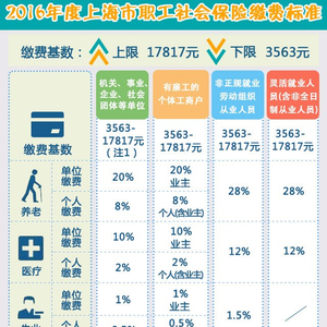 中新网4月6日电 据上海市政府新闻办公室官方微博消息,上海市人社局今日发布,2016年度上海市职工社保缴费基数自4月1日起调整,上下限分别调整为17817元和3563元。2016年5月起,将按照新的标准征收。
