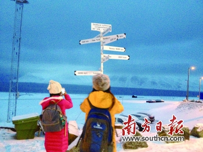 到朗伊尔机场不过午后三四点,却已是天色向晚的模样,我们在小小的机场外面等巴士,却又被路边的一块指示牌吸引。那是一块分别指向不同方向并注明距离某地多少公里的路牌,当看到那些“距离罗马4052KM”、“距离南极点18692KM”的字样,我们终于觉得是真的到了北极了,这里可真远啊。专题策划 李贺 郭珊 ●文/图 曾敏儿