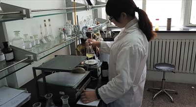 国家盐产品质量监督检验中心工作人员在对5份食盐样品进行检测。新京报记者 李文贤 摄