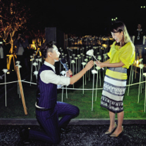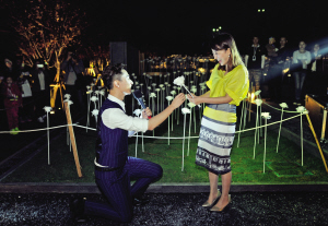 在4月8日开展当晚,作为“星际花园·玫瑰银河”全球艺术展亮灯嘉宾的重庆电视台知名主持人汤云弈、康康,在充满浪漫爱情气息的玫瑰灯海中,上演了一出浪漫的求婚惊喜,这一对重庆本土娱乐圈知名情侣,在这一片一生一遇的玫瑰灯海中,许下了相爱一生的爱情诺言,也令现场的浪漫气氛达到了高潮。