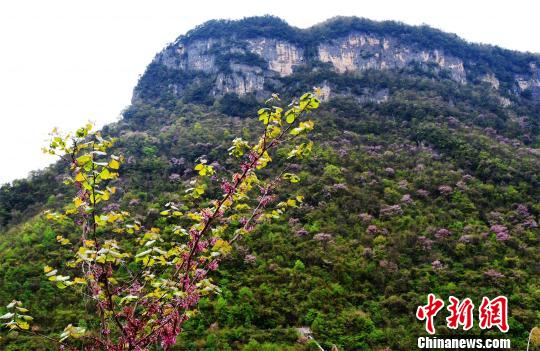 湖北堵河源国家级自然保护区约1000亩野生紫荆花竞相开放 杨守保 摄