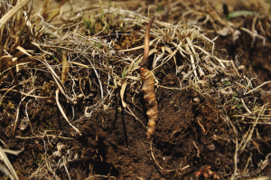 在冬虫夏草采挖的过程中,难免会出现折断的现象,这时通过用小木棍贯穿其中,断草自然就能卖到完整的价格。