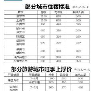 以陕西为例,去年9月30日版本仅规定,部级、司局级、其他人员到陕西省省会西安出差,住宿标准分别为800元/人·天、460元/人·天、350元/人·天。新规维持了这一标准,同时将差旅住宿费标准细化到了地市(或区县),如到榆林市、延安市出差,部级、司局级、其他人员的住宿标准为680元/人·天、350元/人·天、300元/人·天。