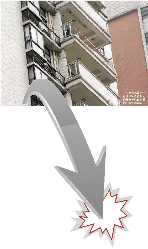 海珠区光大花园16楼一户单元的阳台玻璃护栏前天清晨被狂风卷走,不仅让住户吓出一身冷汗,也让许多街坊的心都“离一离”:阳台上的玻璃护栏怎么会这么脆弱说吹走就吹走呢?阳台上还有不少花盆、金鱼缸等杂物,会不会也有一天被大风吹走了?引起更多街坊关注的是,这些护栏、花盆、鱼缸等阳台上“高空炸弹”,应该由谁来管理和负责呢?阳台上坠下物体,造成伤亡或者破坏的,又该是业主、管理处还是楼盘开发商负责呢?