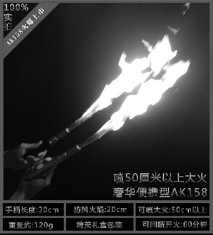 家住深圳的王女士购买了某款号称“豪华便携版AK158”的防身火焰喷射器,她表示,“火力调节开关用处不大……安全锁也不好用,不适合长时间放包里。”