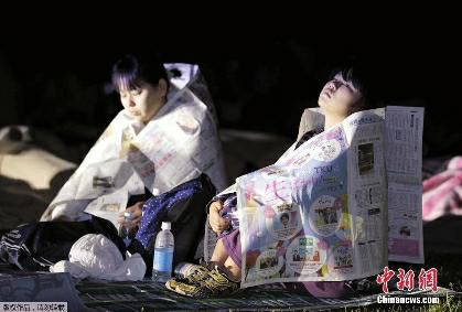 有灾民裹报纸体育馆避难
