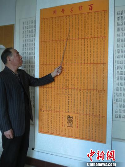 河北保定77岁老人108种字体临撰《百体千寿图》(图)