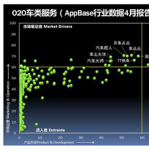 进入者(Entrant):市场运营及产品开发均不足60%的App被归结为进入者(Entrants),例如下图中[App③]。进入者在市场运营和产品开发方面都不具备优势,但如果在细分领域垂直形成差异化,实现单点突破,颠覆现有市场的格局将会有很大的机会,而这更是风险投资人和VC更为关注的。