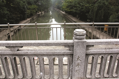 今天内桥到淮清桥的河道,就是古青溪的下半部遗迹,而珠江路太平桥东侧的河道就是古青溪上半部遗迹。中间五老村、红花地部分的青溪已经因历代改造河道几乎消失,今天这一带是密集的居民区。在珠江路南侧,太平桥下河道呈东西向,桥梁以东的河道就是古青溪的遗迹。河宽约七八米,两岸是近年新修的河堤,水流较缓,树木葱郁,是一个闹中取静的佳处。