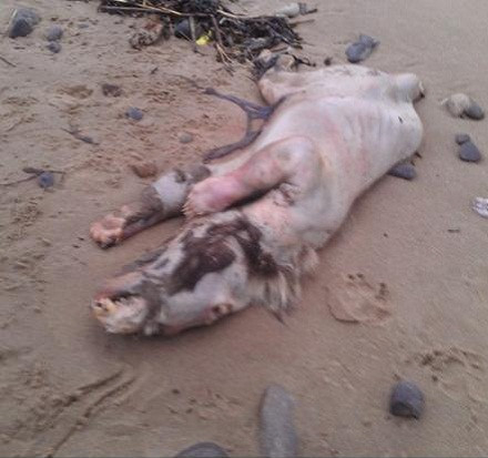 英国海滩现怪兽尸体 全身无毛长有獠牙