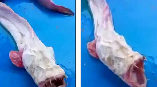 泰国渔民捉到深海怪鱼 长满嘴利齿