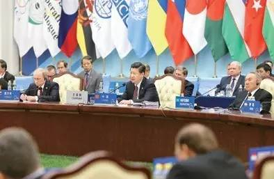 图为:2014年5月21日,亚洲相互协作与信任措施会议第四次峰会在上海举行。中国国家主席习近平主持会议并发表题为《积极树立亚洲安全观 共创安全合作新局面》的主旨讲话。