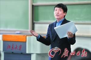 4月18日,曹文轩准时出现在北京大学的课堂上。他讲授的“小说的艺术”是一门本科生和研究生的通选课,这是他这个学期唯一一门公开课。200人的课室早已座无虚席。还没踏进课室,有几名学生在教室门口将他截住,获取他的签名后,欣欣然离开。