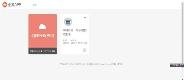 第二步,登录小云APP管理平台,会看到一个“创建云端应用”的按钮,点击该按钮。这是非常重要的一步,因为点击了这个按钮后,你就正式进入制作流程了。