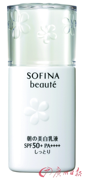 08 SOFINA美白日间倍护防护乳液(SPF50+ PA++++):拥有美白有效成分罗马母菊ET,抑制黑色素生成,防止色斑、雀斑的生成。