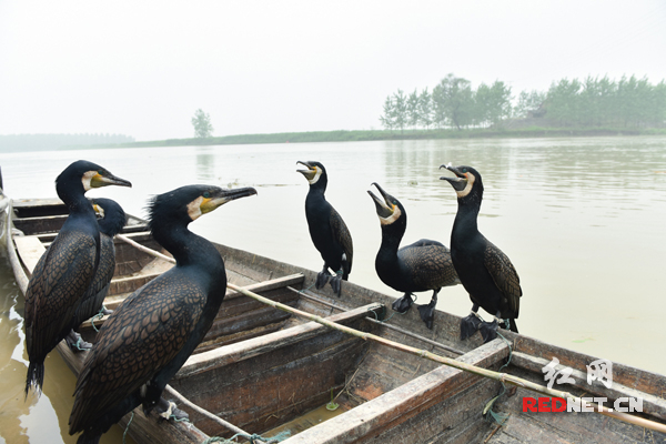 洞庭湖畔的鸬鹚,渔夫饲养的捕鱼能手。