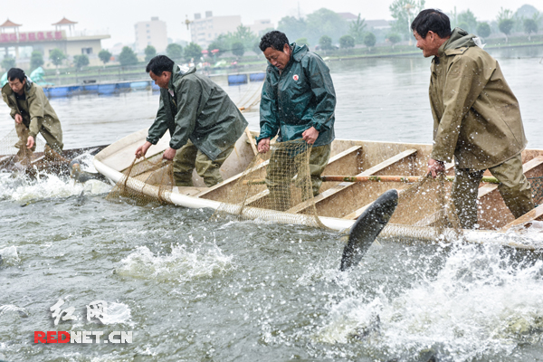 热火朝天的捕鱼场景
