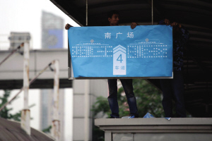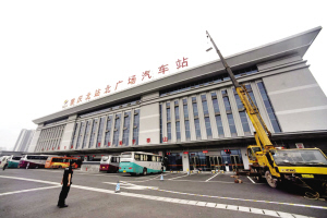 昨天,记者在现场看到,大楼顶部的钢架上的红色大字已经变为“重庆北站北广场汽车站”,周边LED屏幕上的字也已变为“重庆北站北广场汽车站”。但在汽车站右侧,还有吊车施工,站房面向火车站一侧的标牌已经完工,另外一面还在施工。