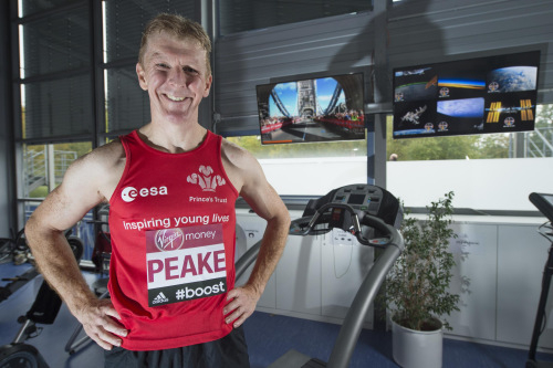 据报道,由于皮克是在无重状态下起跑,他需要依靠肩带及腰带把自己固定在跑步机上,完成全长42公里路程。