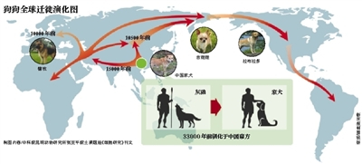 “狗狗的这种迁徙肯定是伴随着人类的迁徙,它驯化之后就不是一个野生动物了,生存能力不强。”王国栋介绍,研究狗的迁徙和进化,在另外一方面也可以作为一个指引人类迁徙和进化的方向和结论。王国栋举例说,如果狗狗是从北方走的话,人类也是从北方走。