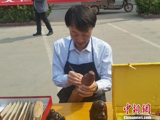 中新网衡水4月28日电 (崔志平 王鹏 张静)28日,来自全国各地的23名雕刻师齐聚河北省武邑县硬木雕刻产业园,将这一指尖上的传统工艺发挥得淋漓尽致,让现场的民众见证了掌心上的民间工艺传奇。武邑县首届硬木雕刻大赛暨硬木雕刻产业协会重组大会在此间举行。