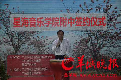 区委二届七次全会和南沙“十三五”发展规划明确提出:“加强星海文化建设,打造南沙特色文化品牌。”今天,我们在这里举行文化招商签约仪式,是落实区委、区政府工作部署的具体举措,是打造榄核音乐摇篮、文创小镇的生动实践。在此,我要感谢星海音乐学院和羊城晚报报业集团的投资热情,为我们南沙榄核进一步增添了强劲的发展动力。