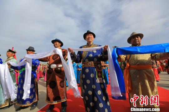 4月29日,博湖县萨吾尔登故乡文化艺术节现场非遗传承人正在领唱祝赞词。 年磊 摄