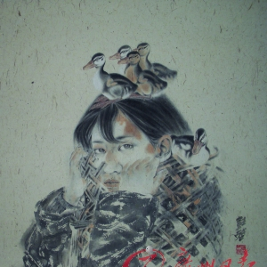 我的人物用略微变形和夸张的形象表现我自己,表情是恐惧的。我试图以轻松的心态去创作,看能否达到意想不到的碰撞。正因为电脑技术的发达,在素材的整理和运用方面有了很大的自由空间,我通常会把拍好的形象照片通过电脑加工,然后再在手头上加工,这样的创作素材就被赋予了时代性。但我认为国画可以不要太前卫——与当代艺术不同,它本身是带有中国传统文脉,我们的创作也更应该带有本土的文化气质与文化精神。