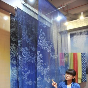 汤文君注入诸多设计创意。她用工笔技法刻版,获得精致复杂的图案;又拓展材质,棉布、蚕丝、绢,制作出适合茶室、香道的布景挂帘。蓝染在南投已渐成产业,不仅助力灾后重建,还透过艺博会和多种交流平台寻求对外发展通路。