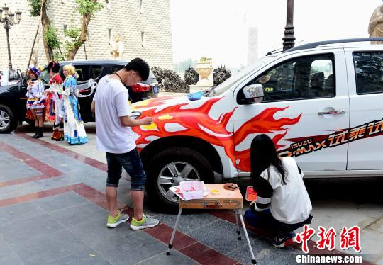 学生在展示车绘。 贾敏杰 摄