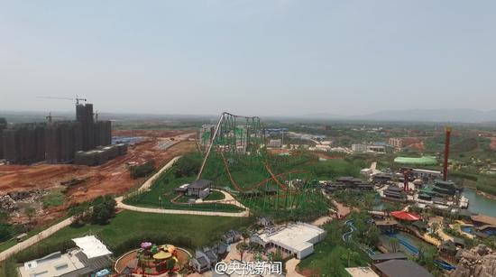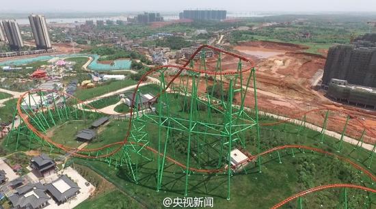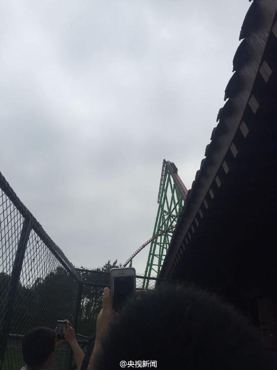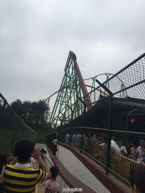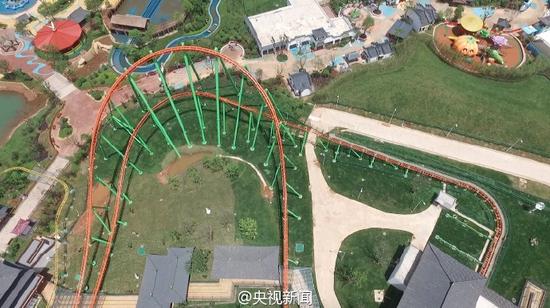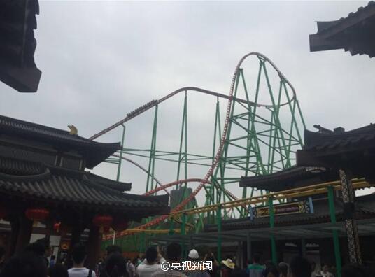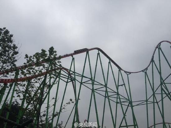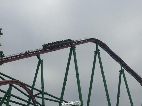 原标题:中国最高过山车半空停车!28人悬在50米高空