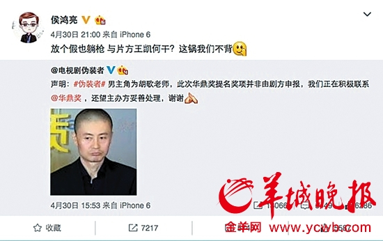 侯鸿亮在微博喊冤