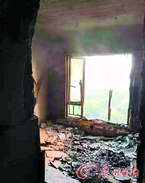 傅先生的房屋被完全烧毁。 当时起火的情形。