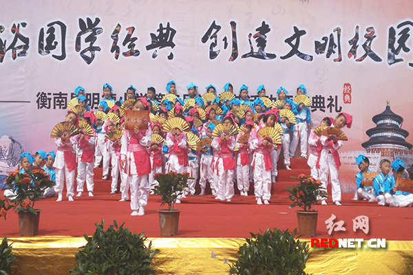 为创建文明校园,衡南县明德小学组织开展了“沐浴国学经典,创建文明校园”主题系列活动,参演师生在活动中展示自我风采,起到怡情养志、涵育文明的重要作用。各年级师生采用读、背、唱、等多种形式进行节目展演,可谓百花齐放。