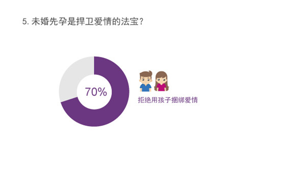 那么,在父母干预两人感情时,男女是否会考虑用孩子捍卫自己的爱情,获得家长的认可呢?调研数据显示,近七成单身男女表示拒绝用孩子捆绑爱情,不会用未婚先孕的方法来促使父母同意婚事。