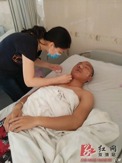 妹妹扈萍在医院精心照料哥哥扈勇