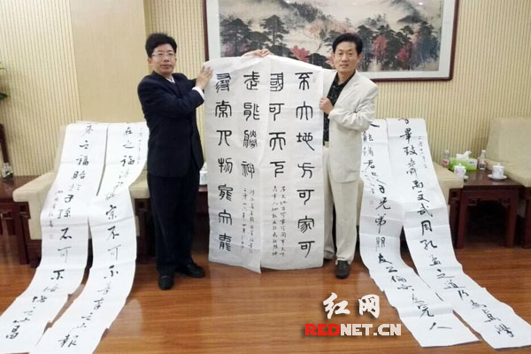 周用金应邀为韶山毛氏宗祠书写楹联 作品将铭刻祠堂门柱