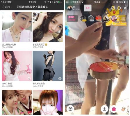 下午3点,在深圳某地,小北、美晗、瀚婷、观音宝宝等6位美女主播向世界上最臭食物发起了挑战。在挑战过程中,6位主播分成了2组,通过直播向用户拉票求助,累积星光值相对较低的一组需要打开瑞典鲱鱼罐头并吃掉。半小时后,一组女主播因为星光值太低需要吃鲱鱼罐头。罐头打开的一瞬间,汁液立刻喷洒出来,恐怖的臭味四散,有的主播就开始流泪,要吃罐头的主播更是大喊“救命”。