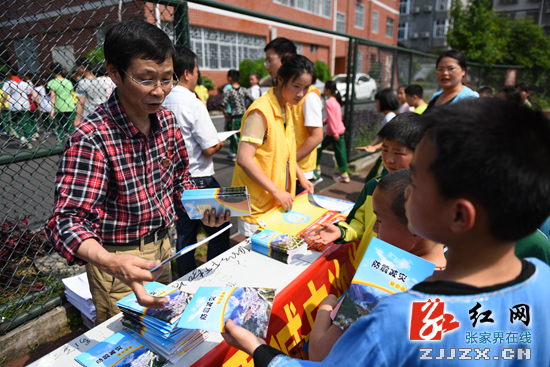 来自张家界市地震局的工作人员与龙门社区的社工们为学生发放防震减灾手册红网张家界站5月13日讯(分站记者 向韬)5月12日是四川汶川地震八周年纪念日,为了更好地普及地震常识,科学防御地震灾害,当日下午,张家界市地震局携手张家界市龙门社会工作服务中心,在天门小学举行地震疏散演练活动,全校3000余名师生参与此活动。